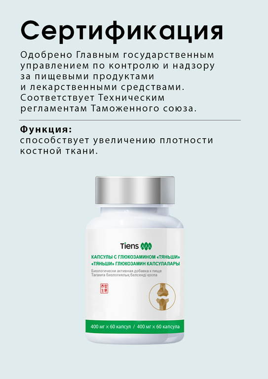 Глюкозамин относят к классу природных веществ, защищающих хрящи и суставы. Основная роль глюкозамина в организме человека – стимуляция выработкивеществ, способствующих восстановлению хрящевой ткани. Капсулы с глюкозамином «Тяньши» помогут вам чувствовать себя здоровым и активным и жить комфортной полноценной жизнью!