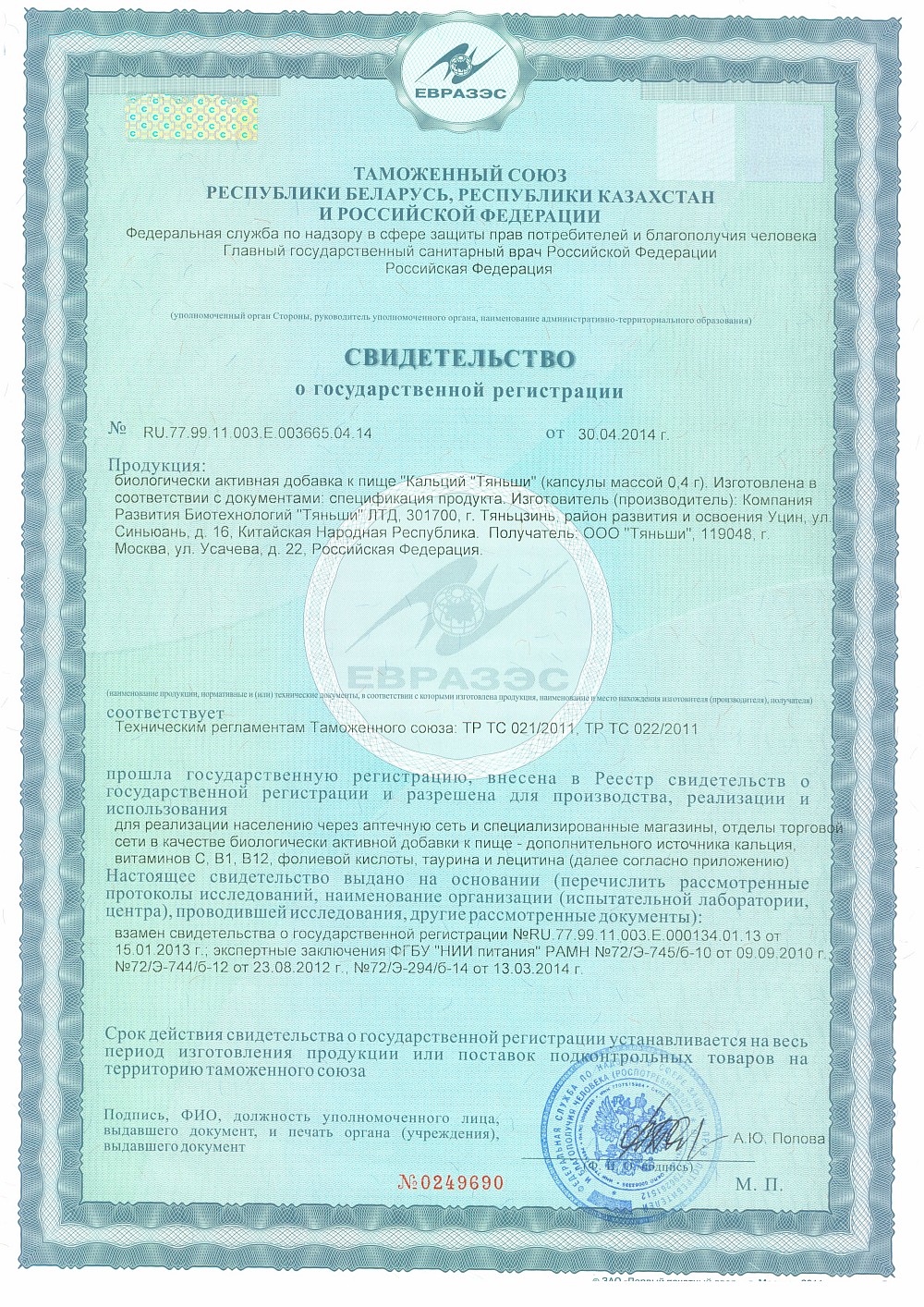 Кальций «Тяньши» разработан для удовлетворения суточной потребности в кальции и необходим для полноценной работы всего организма.